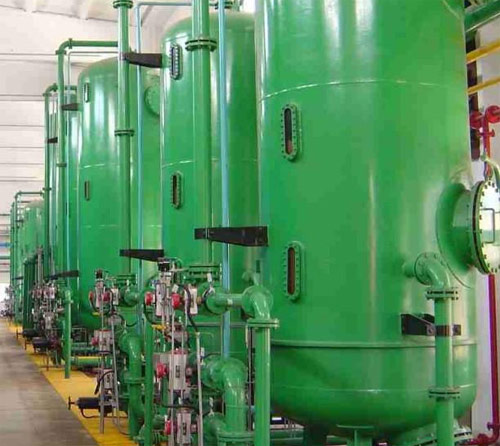 本系統(tǒng)有兩種進水方式:軟化(軟化器處理水)進水和初脫鹽(反滲透處理水)進水,分別由各自的控制閥控制進水。